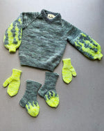 Størrelserne angivet er baseret på barnets alder, størrelse 1 er for børn i 1- 2 års alderen og så videre. Målene er baseret på sweateren inden vask. Sweateren bør have et positivt bevægelsesrum.