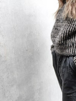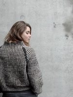 The sweater is knitted bottom up with a 1x1 rib with two colors in round for the whole project. The body and sleeves are knitted separately and connected together by the yoke and knitted as one piece from there in round. In the pattern I refer to the two colors as main color (col 1) and contrast color (col 2), both colors are equally at play here, the main color is the knitted stitch and the contrast color is the purled.