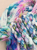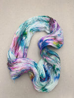Angel lace  80% Extra Fine Merino and 20% Silk Non-Superwash 1200 m /100g hanks Needles : 2 mm 2ply construction Handwash or machine wash on wool program.