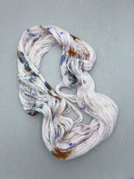 Angel lace  80% Extra Fine Merino and 20% Silk Non-Superwash 1200 m /100g hanks Needles : 2 mm 2ply construction Handwash or machine wash on wool program.