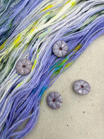 The button comes in caramel, grey, white, green, pink, dark grey, baby blue, black & lavender with painted gold or silver details.