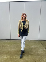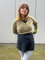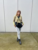 The yarn quantity required is based on the average, and is therefore an approximate number. The sweater can be knitted in any yarn that consists of the same thickness as Fine Organic, held together with either Angel lace or Kid silk mohair, or reaches the same gauge as provided.