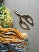 This well designed scissors is the perfect cutting tool with its comfortable cut work handle and finely pointed blades. Golden in tone, it is the perfect trimming tool for all types of handwork.