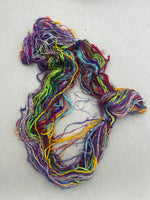 A true artisan yarn with rich texture and vibrant personality, our Recycled Silk Sari Yarn is a joy to work with. It adds a bold, one of a kind look to your projects full of character and color.