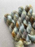 Kid silk lace 64% Kid mohair and 36% silk, brushed singles 420 m/50g Hanks Needles: 2,5mm-5mm Single ply