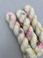 Kid silk lace 64% Kid mohair and 36% silk, brushed singles 420 m/50g Hanks Needles: 2,5mm-5mm Single ply
