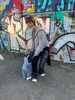 Uppgefin mál eru tekin af peysunni eftir að peysan hefur verið þveginn og lykkjurnar raktar upp. Peysan á að vera rúm í stærðum og ermarnar eru ekstra langar.