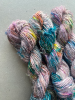 Hand spun Himalayan recycled silk yarn which has been dyed in our Copenhagen studio.