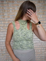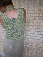 Toppen strikkes nedefra og op, rundt på rundpind. Toppen deles ved ærmegabene til for- og rygstykke, hvorefter der strikkes frem og tilbage på retsiden og vrangsiden. På både for- og rygstykket deles arbejdet for at lave hullet på ryggen samt hullerne ved skuldrene på forstykket. Stropperne samles over skuldrene med madrassting. Ribkanterne ved halsen og i ærmegabene strikkes til sidst, ved at samle masker op og strikke rundt på rundpind.
