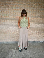Målene er baseret på toppens størrelse inden vask; størrelsen kan ændre sig, alt efter hvordan du vasker den. Toppen er designet til at sidde tæt, og har en positive ease’ på et par cm.
