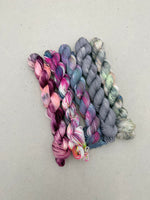 These minis are incredibly soft and airy, and feel comfortable directly against the skin. They’re perfect for socks, shawls, baby knits, and also lovely held together with a silk mohair as a companion thread for lightweight sweaters.