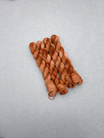 These minis are incredibly soft and airy, and feel comfortable directly against the skin. They’re perfect for socks, shawls, baby knits, and also lovely held together with a silk mohair as a companion thread for lightweight sweaters.