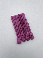 These minis are incredibly soft and airy, and feel comfortable directly against the skin. They’re perfect for socks, shawls, baby knits, and also lovely held together with a silk mohair as a companion thread for lightweight sweaters.