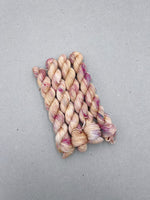 These minis are incredibly soft and airy, and feel comfortable directly against the skin. They’re perfect for socks, shawls, baby knits, and also lovely held together with a silk mohair as a companion thread for lightweight sweaters.