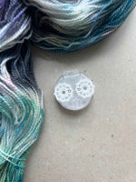 The Knitting Row Counter has magnifiers over the numbers for easy viewing, a wide button with a satisfying click to advance your count, and a lock to avoid accidentally moving the number dials. Numbers can also be rotated manually from the sides. The steel backing sticks to the MAKERS KEEP, the magnets of the MAKERS BOARD, or any other magnetic surface.