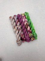 These minis are incredibly soft and airy, and feel comfortable directly against the skin. They’re perfect for socks, shawls, baby knits, and also lovely held together with a silk mohair as a companion thread for lightweight sweaters.
