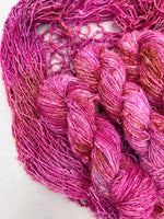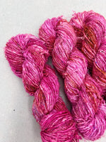 A true artisan yarn with rich texture and vibrant personality, our Recycled Silk Sari Yarn is a joy to work with. It adds a bold, one of a kind look to your projects full of character and color.