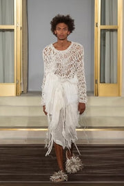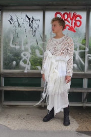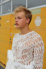 The collection was inspired by Italian churches in the old town of Genoa, with a mixture of a modern perception of the marriage. The collections structure is built on achieving several sustainable goals. The styles are created out of biodegradable materials, both recycled and new. The patterns are built with a zero waste pattern making where nothing is wasted in the progress. The styles are a combination of deferent crafts, where knitting and tailoring is mixed in unconventional ways.