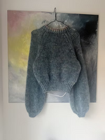 The pattern was created to make use of leftover mohair threads, so please feel free to mix together any mohair threads as desired. The sweater weighs between 200 - 300 gr, and you can play with any leftovers and change out colors as you want. Check the striped version in the pattern or go on Instagram and search under the hashtag #jainsweater to find more inspiration.