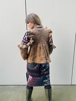 Kid silk mohair fra Thelma Steimann; garnet er en håndfarvet blanding af børstet kid mohair (72%) og silke (28%). Det er et let og silkeblødt garn, der er lækkert at arbejde med. Løbelængden er ca. 420 m / 50 g per fed.