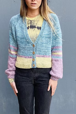 Cardiganen strikkes oppefra og ned. Den strikkes frem og tilbage på rundpinden. Der tages mask- er ud, indtil cardiganen har den rette bredde, hvorefter der sættes masker til hvile til ærmer og kroppen strikkes færdig. Derefter strikkes ærmerne fra ærmegabene, rundt på rundpind. Knaphullerne er placeret på den inderste kant, og strikkes til sidst.