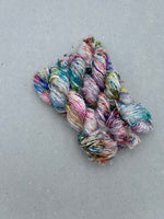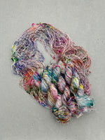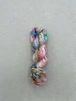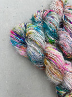 A true artisan yarn with rich texture and vibrant personality, our Recycled Silk Sari Yarn is a joy to work with. It adds a bold, one of a kind look to your projects full of character and color.